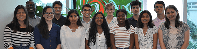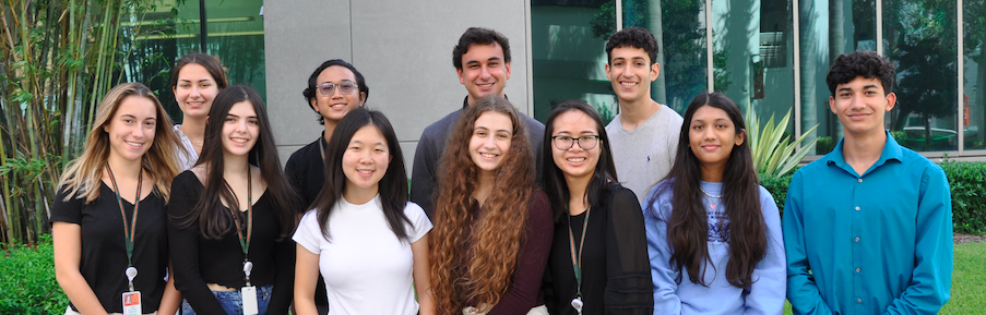 Congratulations to the 2018 JJ Vance summer Interns (pictured above). Front row: Artesha Neloms-Miami Jackson Senior High School; Adetola Alonge-Miami Palmetto Senior High School; Rawan Eldabbas-Everglades High School; Nikole Guevara-Miami Coral Park Senior High School; Katherine Morales Pardo-Medical Academy for Science & Technology; Alexa Martinez-BioTECH@ Richmond Heights High School, Sarah Lantsman-Alonzo and Tracy Mourning Senior High Back row: Carolina Alvarez-Coral Gables Senior High School; Gabriel Gallardo-Belen Jesuit Preparatory School; Hadrian Gonzalez Castellanos-Jose Marti MAST 6-12 Academy; Leo Ratzan-Ransom Everglades School; Melissa Canales-TERRA Environmental Research Institute; Hank Ingham-Pine Crest School.