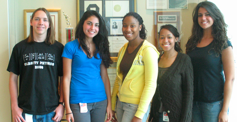 2009 JJ Vance Summer Interns: (from left) Justin Paluch – Miami Country Day School, Arielle Kushman – Ransom Everglades, India McMillan – North Miami Beach High, Ashli Marie Wright – North Miami Senior High, Elizabeth Elmaleh – Miami Palmetto High School