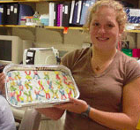 Although each CHG intern is not required to bake a chromosome cake, the CHG staff will long remember JJ Vance Memorial Intern Kate Crandall for her superlative effort. During summer 2002, Kate performed genetic mutation screening for the CHG Neural Tube Defect Research Group. Before leaving for Yale University, the recent East Chapel Hill High graduate said, “It was an amazing summer experience and I learned so much.”University of North Carolina at Chapel Hill freshman Sukaina Ahmad gained valuable experience in autism mutation screening through her work with the CHG Genomics Research Lab. The East Chapel Hill High School graduate said that “the internship was challenging to me and taught me many things about genetics and working in a lab. I think the most useful skill I learned was learning how to communicate efficiently with other people.” By successfully completing her Parkinson disease mutation screening project, Chapel Hill High School senior Natalie Rubinstein achieved another step towards a career in science. Natalie said, “The internship was both challenging and stimulating. I found the project assigned to me engaging. The research group meetings and the talks on Parkinson disease helped me understand the larger context of the specific work I was doing.”