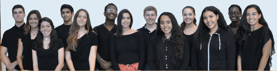 From Left: Sedarah Knowles: Miami Central SHS, Bruny Garcia: Miami Springs SHS, Franklin Zhang: Nova HS, Linda Shahin:Archimedean Upper Conservatory, Jonathan Lee: Westminster Christian HS, Christopher Solano:TERRA Environmental Research Institute, Mariana Gomez: South Broward HS, Margherita Tonini: Miami Beach SHS, Luis Fornes: Archimedean Upper Conservatory, Mariam Farag: Dr. Michael Krop SHS, Carlotta Verita: Ransom Everglades, Ismael Mercier: G. Holmes Braddock SHS, Daniel Dager: Belen Jesuit, Jordan Ledgister: Pines Charter.